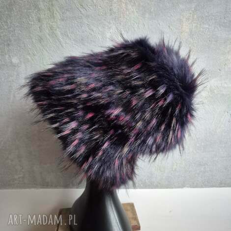 Futrzana czapka fioletowa sztuczne futro czapka na podszewce, rozmiar89,00 zł