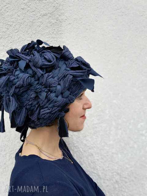handmade czapka artystyczna afro - wytkana ręcznie na krośnie