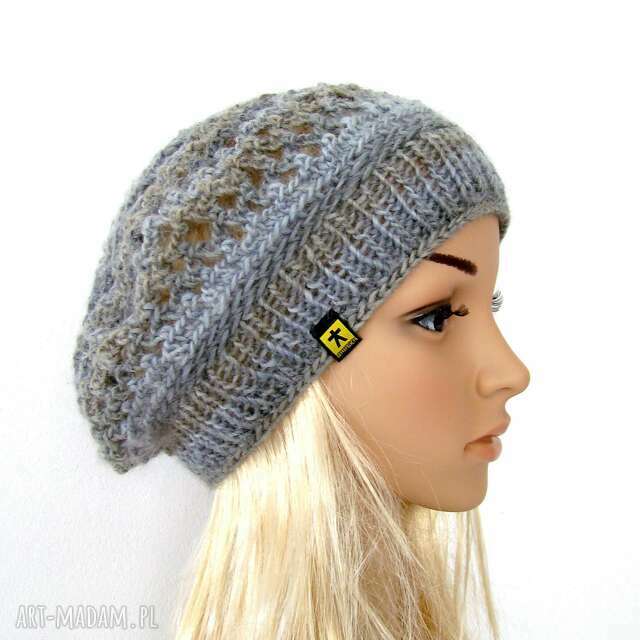 ażurowy beret w szarościach