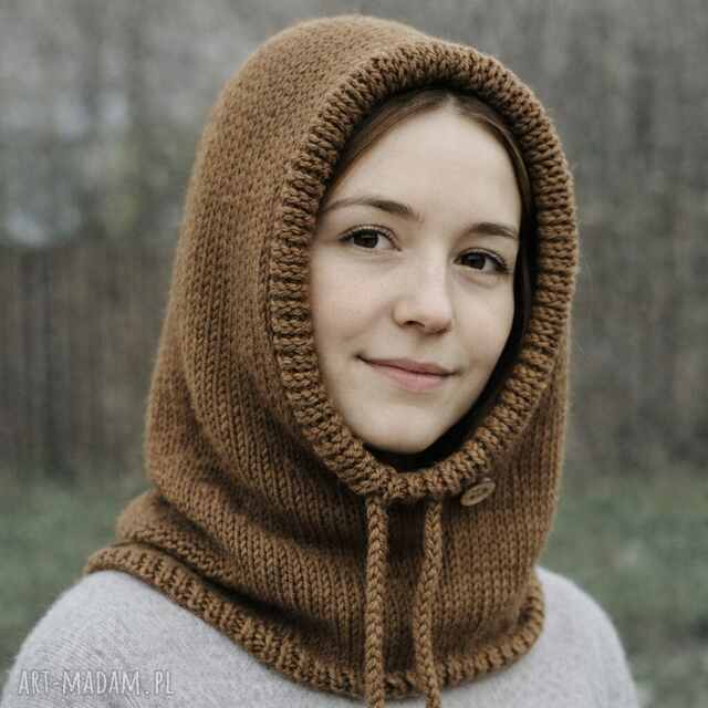 handmade balaclava oversize kominiarka kaptur zamiast czapki z merino camel