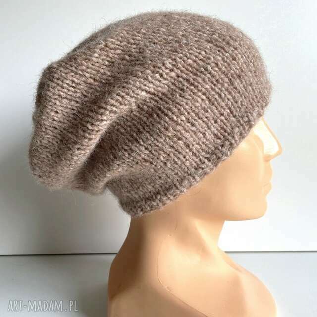 Czapka ręcznie robiona na drutach. Idealna jako czapka jesienna i zimowa.