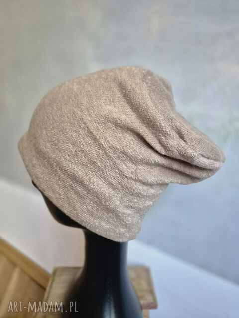 ręcznie zrobione czapka beżowa spokojna dzianina wełniana na podszewce rozmiar