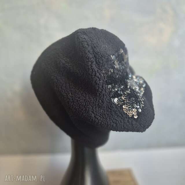 Czapka boho czarna na podszewce duża rozmiar 59 60 cm można spokojnie ukryć pod nią bujne włosy góra koralikowa ciepła czapka polecam e1