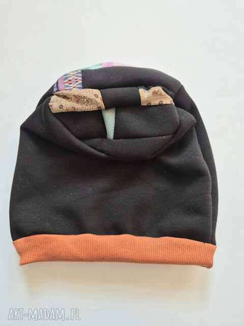 ręcznie zrobione czapka czarna na podszewce rozmiar uniwersalny góra patchworkowa