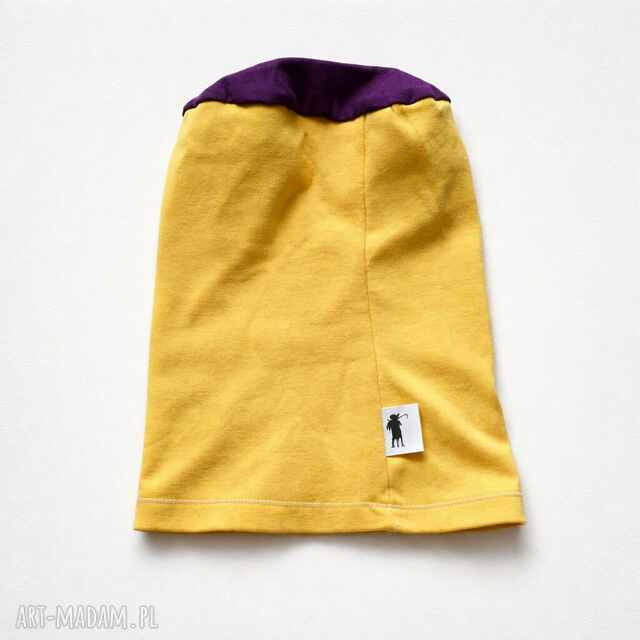 Czapka damska Smerfetka dzianinowa żółta z fioletową górą dobra na codzienne noszenie bez podszewki polecam box e1