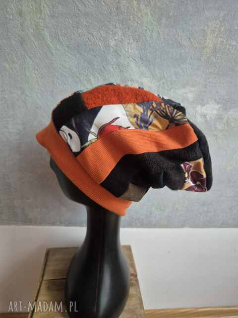 handmade czapka damska smerfetka patchworkowa, na podszewce dobra na codzienne noszenie