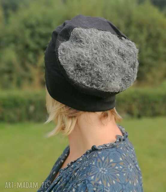 ręcznie wykonane czapka damska szaro czarna dobra na codzienne noszenie, rozmiar