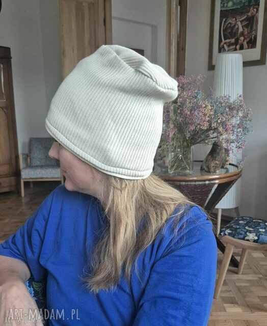 handmade czapka ecru rozmiar uniwersalny na podszewce dobra na codzienne noszenie boks