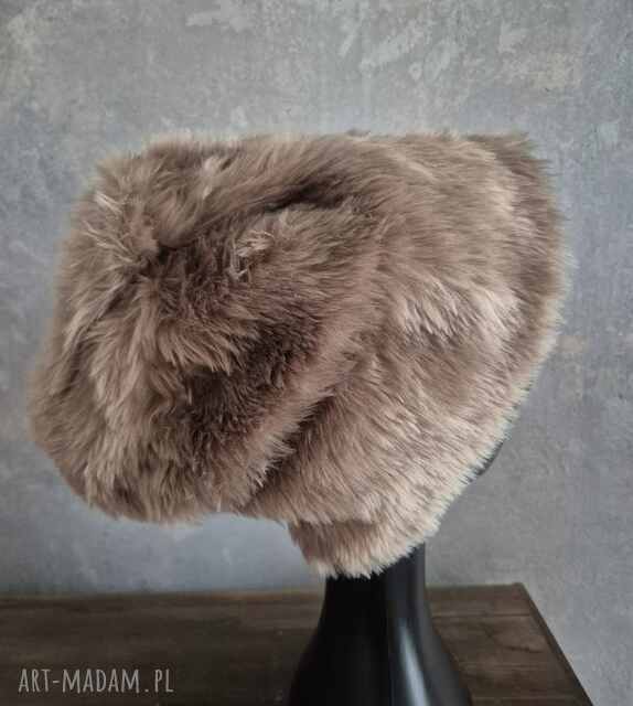 Czapka futrzana sztuczne futro kolor brązowy na podszewce, szyta ręcznie, rękodzieło obwód głowy uni