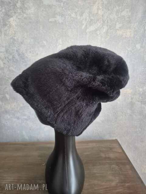 handmade czapka futrzana sztuczne futro kolor czarny na podszewce, szyta ręcznie