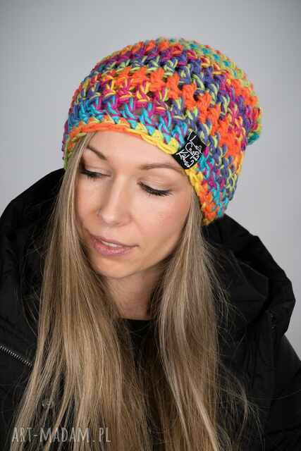 ręcznie wykonane czapka mono melange 52 - multikolor