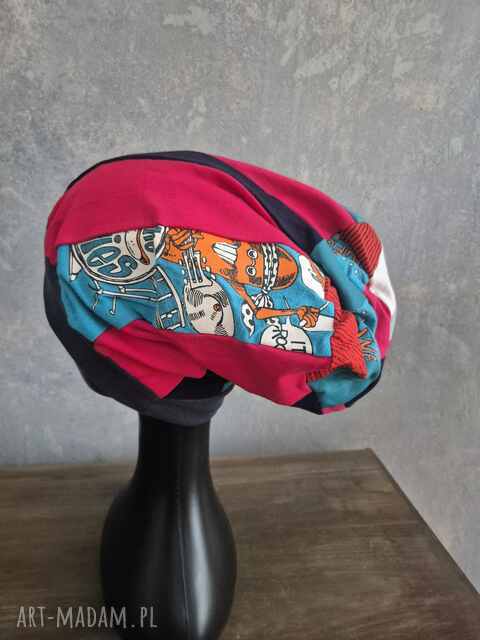 handmade czapka smerfetka patchworkowa na podszewce świetna na codzienne noszenie boks