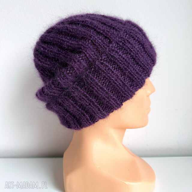 Ręcznie robiona Czapka wywijana MARGARET 100% Alpaka nitka moher i jedwab 4400/16 Ciemnofioletowy