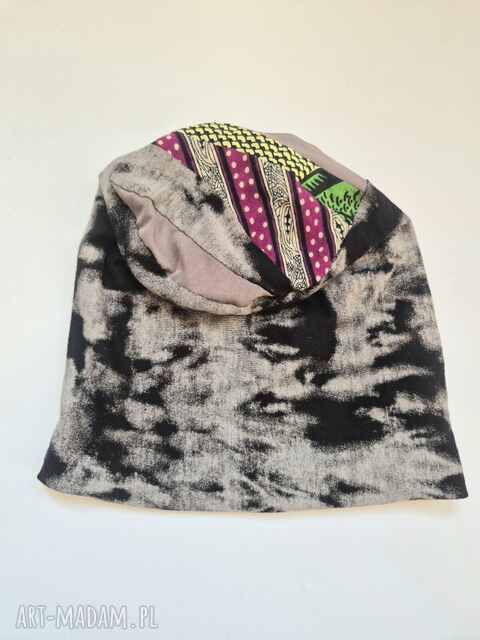 handmade czapka szaro - czarna na podszewce rozmiar M dla głowy o obwodzie 54x55 cm
