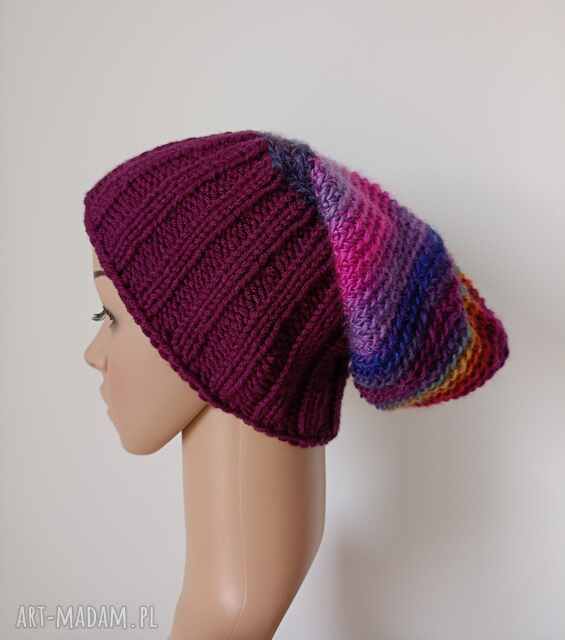 Kolorowy cieniowany beret. Czapki handmade Kolorowy beret, miękki, ciepły, mięsisty,, rozmiar uniwersalny, z wełną120,00 zł