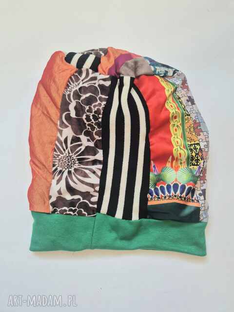 ręcznie zrobione czapka patchworkowa smerfetka na podszewce świetna na codzienne