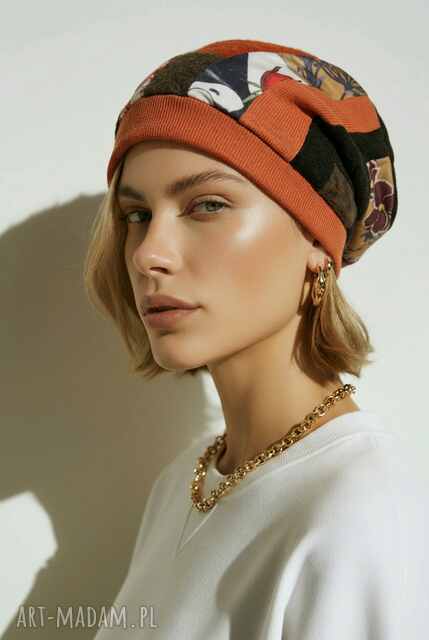 Czapka damska Smerfetka patchworkowa, na podszewce dobra na codzienne noszenie, wykonana w pojedyncz