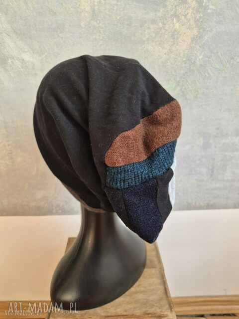 handmade czapka meska damska unisex czarna smerfetka wiosenna uniwersalna na podszewce