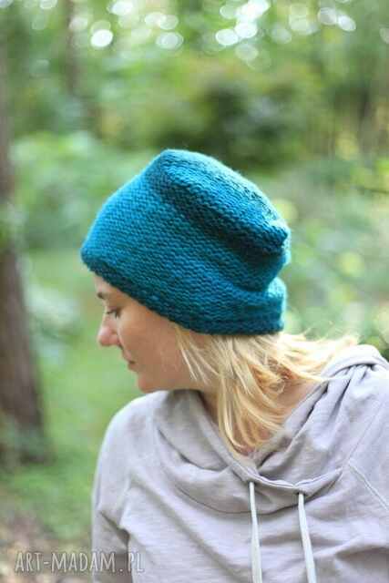 Ciepła czapka niebieska wełniana unisex na podszewce rękodzieło. Bo czapki m box a175,00 zł