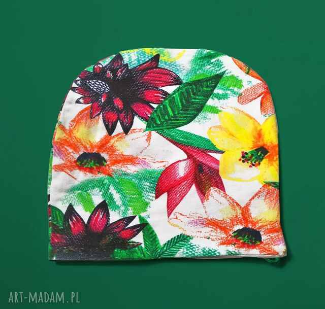 Ta czapka to mój wynalazek na chłodne, letnie poranki, jesienne spacery, coraz cieplejsze zimy - cienka, ale trzyma ciepło jak trzeba, wykonana jest z dwóch warstw elastycznej bawełny. Uwaga! Czapka jest kolorowa! a kolory są nasycone i rzucają się w oczy! Idealne do stonowanej stylizacji ;)