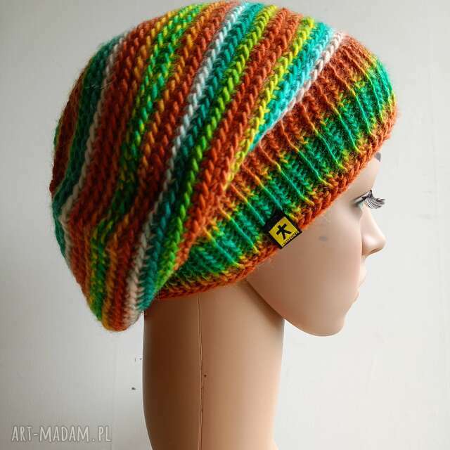 Czapka mono melange 52 - multikolor. Czapki handmade ✔ informacje ogólne, Czapka MELANGE jest ręcznie robiona, Czapka jest długa, 32 cm120,00 zł