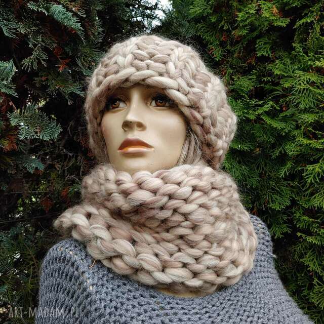 Olbrzymia czapka robiona na grubych drutach z wełny merynosa.180,00 zł