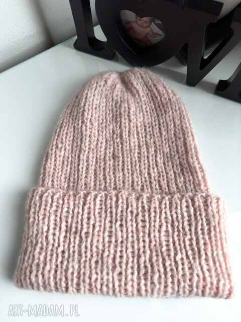 Ciepła czapka ręcznie robiona wywijana CHMURKA Alpaka 33 Różowy Piasek