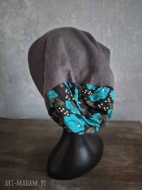 ręczne wykonanie czapka szara smerfetka uniwersalna na podszewce miękka ciepła miła box