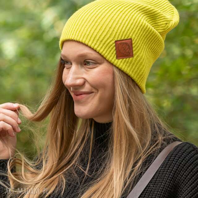 Czapka typu beanie, wykonana z przyjemnej w dotyku przędzy.