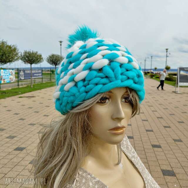 Ogromna czapka z wełny merynosa z pomponem. Czapki handmade Pompon wykonany jest ze sztucznego futra, UWAGA, Czapka ze zdjęcia jest dostępna, 3 do 5 dni140,00 zł