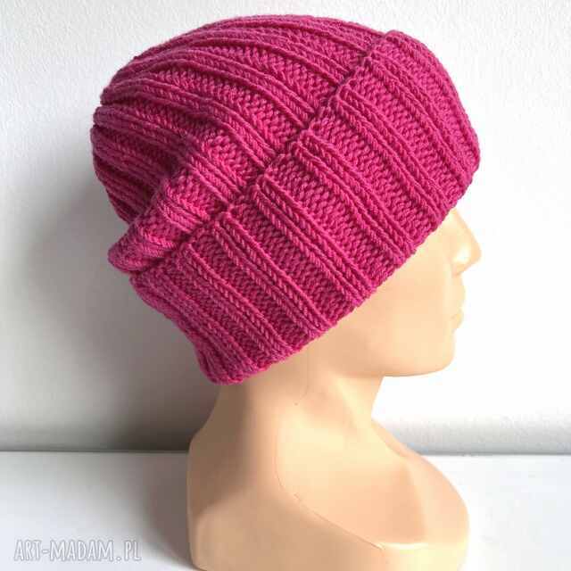 ręcznie zrobione wywijana czapka merino helli 100% baby merino 08 fuksja