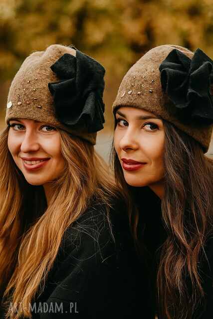 Beret ecru. Ecru czapki Piękny beret zdobiony woalką i broszkami, Kolor ecru150,00 zł